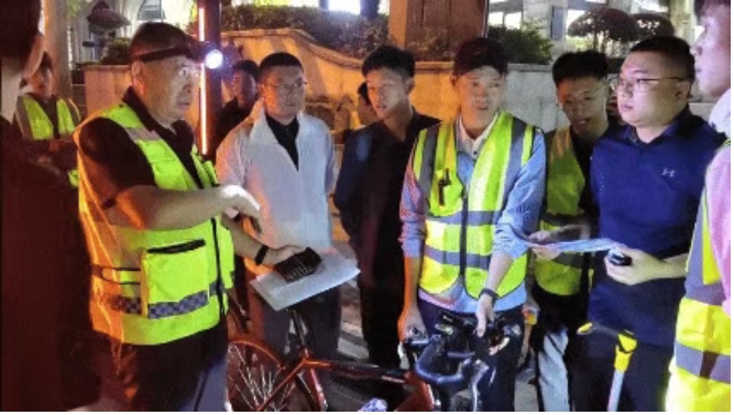 当晚,在对300米的标定路线进行测量后,丈量团队对本次赛事起点杜甫江阁附近做“起点”标记,并开始测量。每骑行1公里,王相英老师就会停下来确认点位,对每公里的点位进行定点、标记、记录存档,以便于后续科学合理地进行公里牌、补给站和医疗点位置的设置。