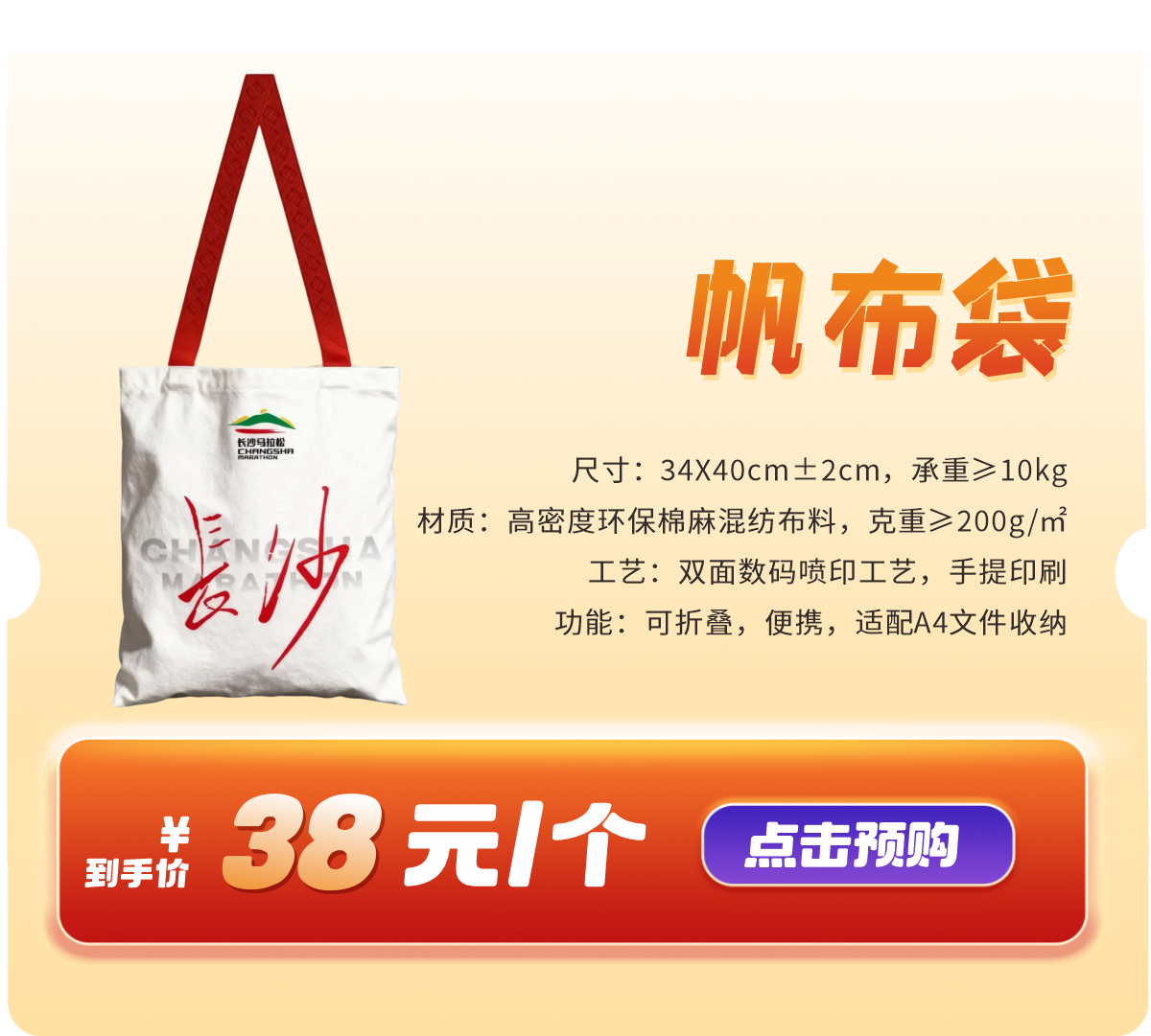 2025长马这款红白配色的帆布手提袋采用结实耐用的布艺材质,包身印有长沙城市元素与赛事专属标识,既彰显长马赛事特色,又充满地域文化气息。大容量设计可轻松收纳参赛物资或日常用品,是兼具实用性与纪念意义的环保单品。