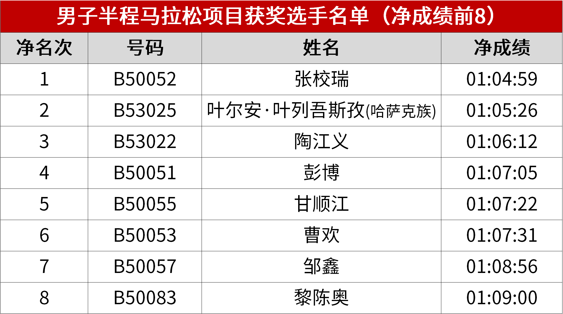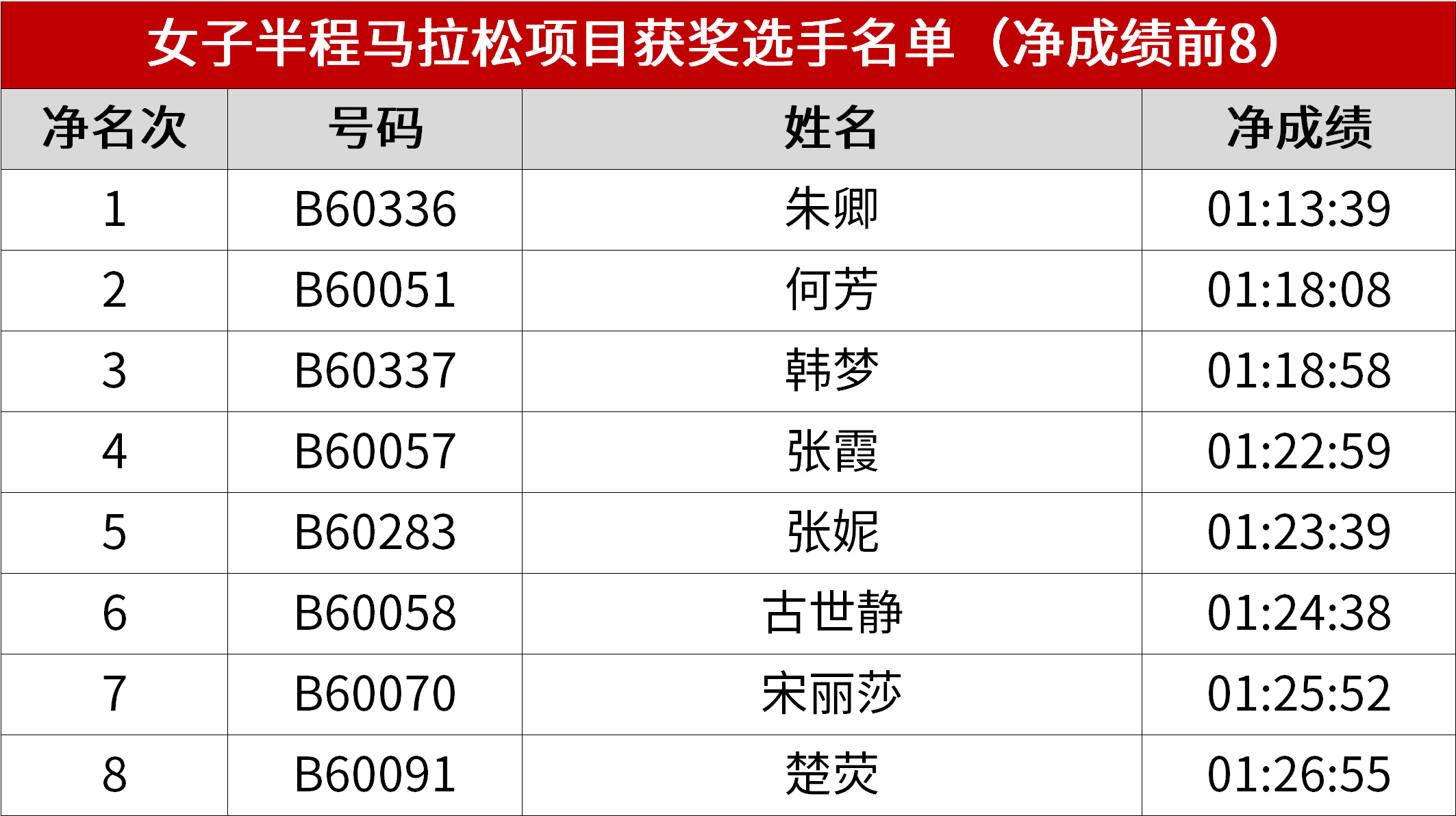 注:半程马拉松项目按照净计时排名,按选手的成绩排名顺序依次录取。